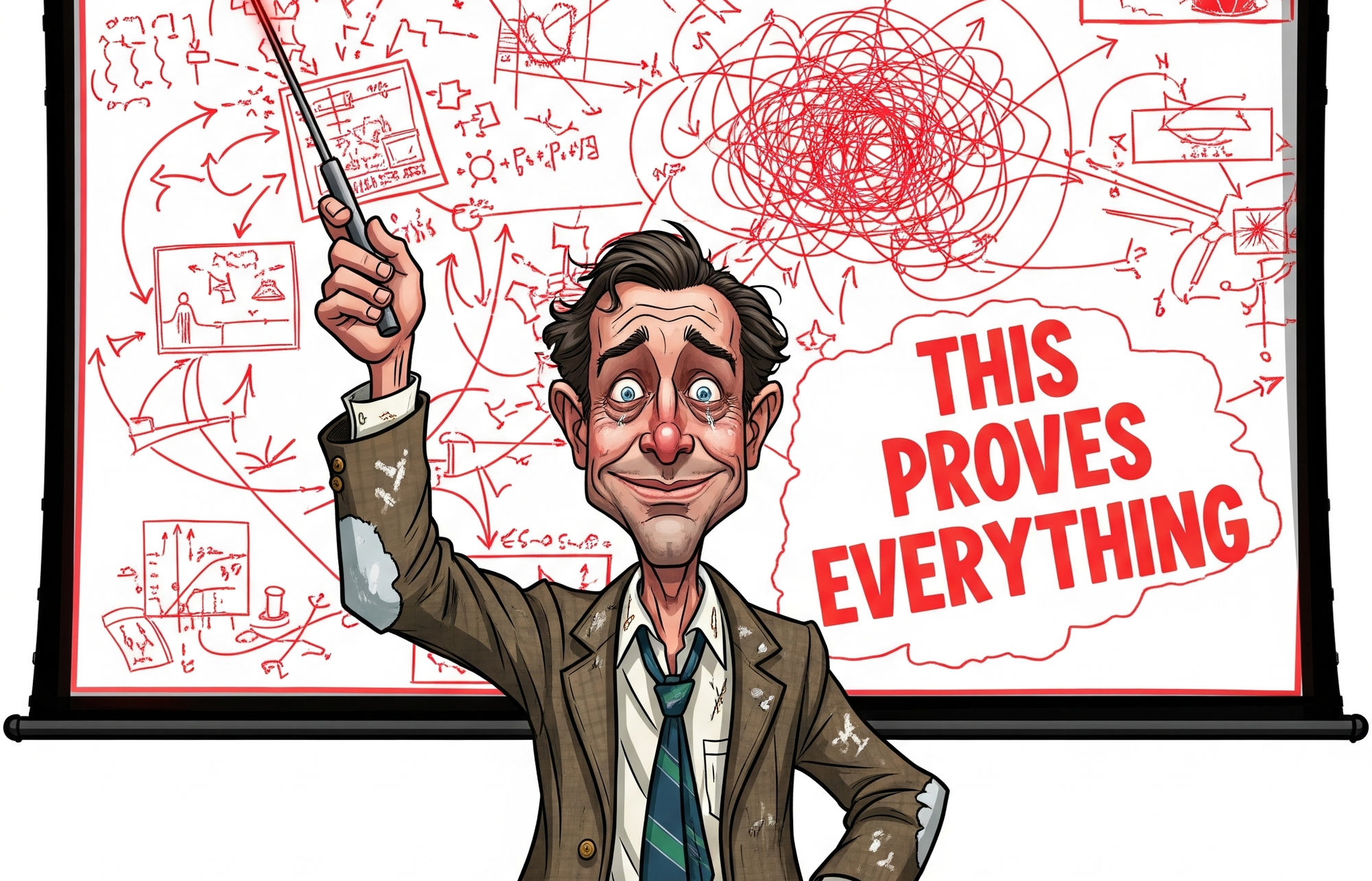 "His jump from a language test violation to the hypothetical "massive accident" and societal 'COLLAPSE' perfectly illustrates his slippery slope worldview, where a misplaced apostrophe leads directly to the fall of Rome."